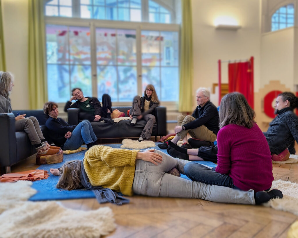 An diesem Sonntag sind wir ganz präsent im jeweiligen Moment, nehmen wahr was gerade da ist und verleihen dem Ausdruck. Wir tauchen also in die Verbindung mit anderen ein, so wie wir gerade sind.